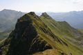 - De route voert over een smalle bergkam met wild uitziende spitse bergtoppen, en plaatselijk over steile berghellingen, wat tijdens of vlak na neerslag erg gevaarlijk kan zijn. De route is vrij lang en afgelegen en er zijn vanaf de bergkam geen alternatieve afdalingsmogelijkheden.